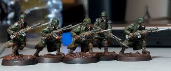 I have also attached a picture of a auxilliary. Unfortunately, Imperial Army uniform varied between regiments, but one was known for it's uniforms that were similar to Vostroyan Firstborn kit.